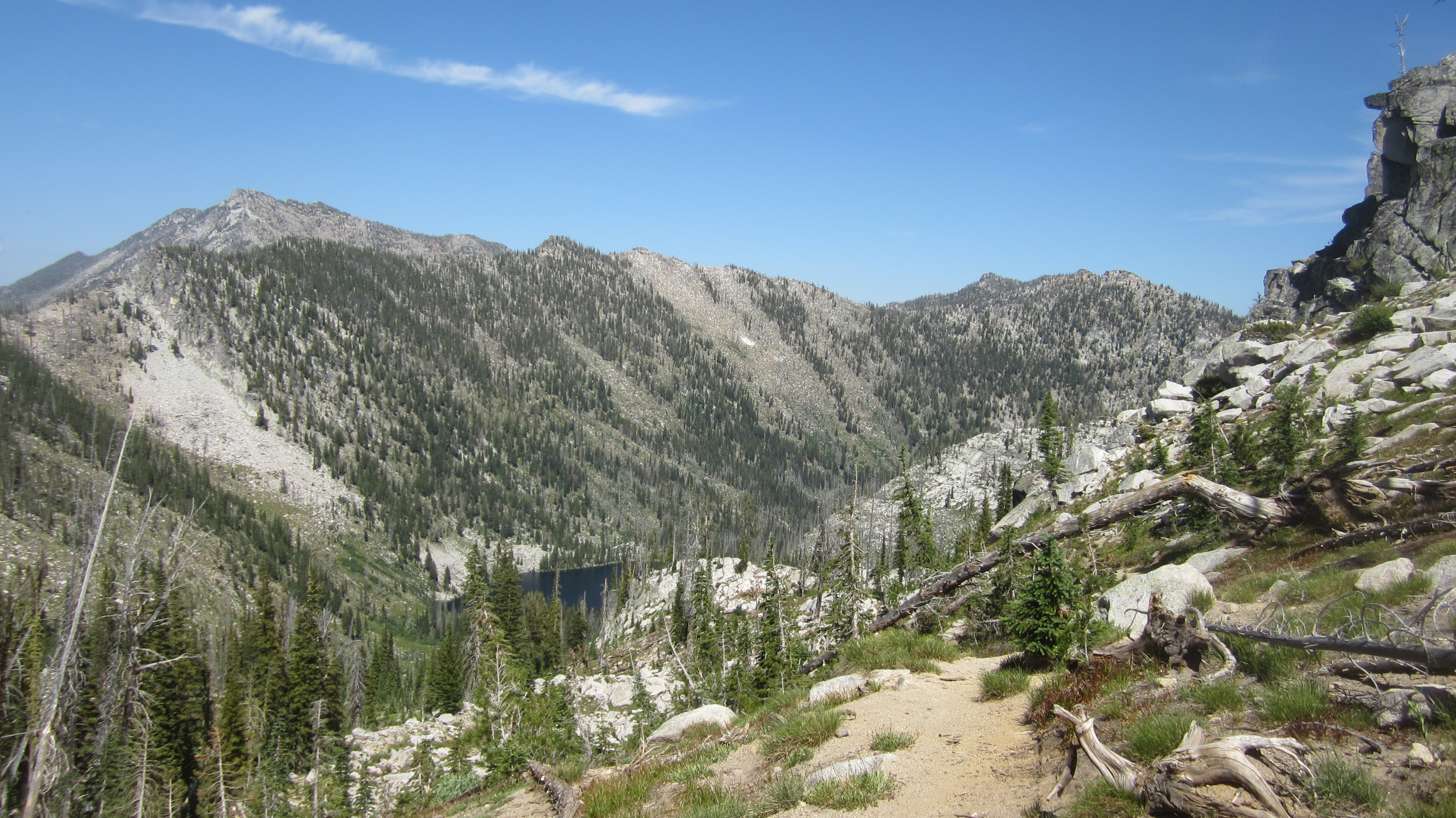 The Hum Lake trail is a rocky ankle-twisting experience that often required me to travel slower than usual and is not recommended for children. There are lots of downed trees from a recent fire that swept through the area. I suggest doing this hike when it’s cooler because of the amount of sun that cooked my skin thanks to the lack of cover, but then again, I did enjoy the blue summer skies. Your choice. There is a steep ascent and descent to the lake that made me feel out of shape. I was also surprised by the amount of flies, which I think might’ve been caused by the excess horse shit along the way. Maybe it was thanks to the fertilizer, but wildflowers were everywhere, and I enjoyed their company more than anything else on this trail, but there were some beautiful views of the surrounding peaks.