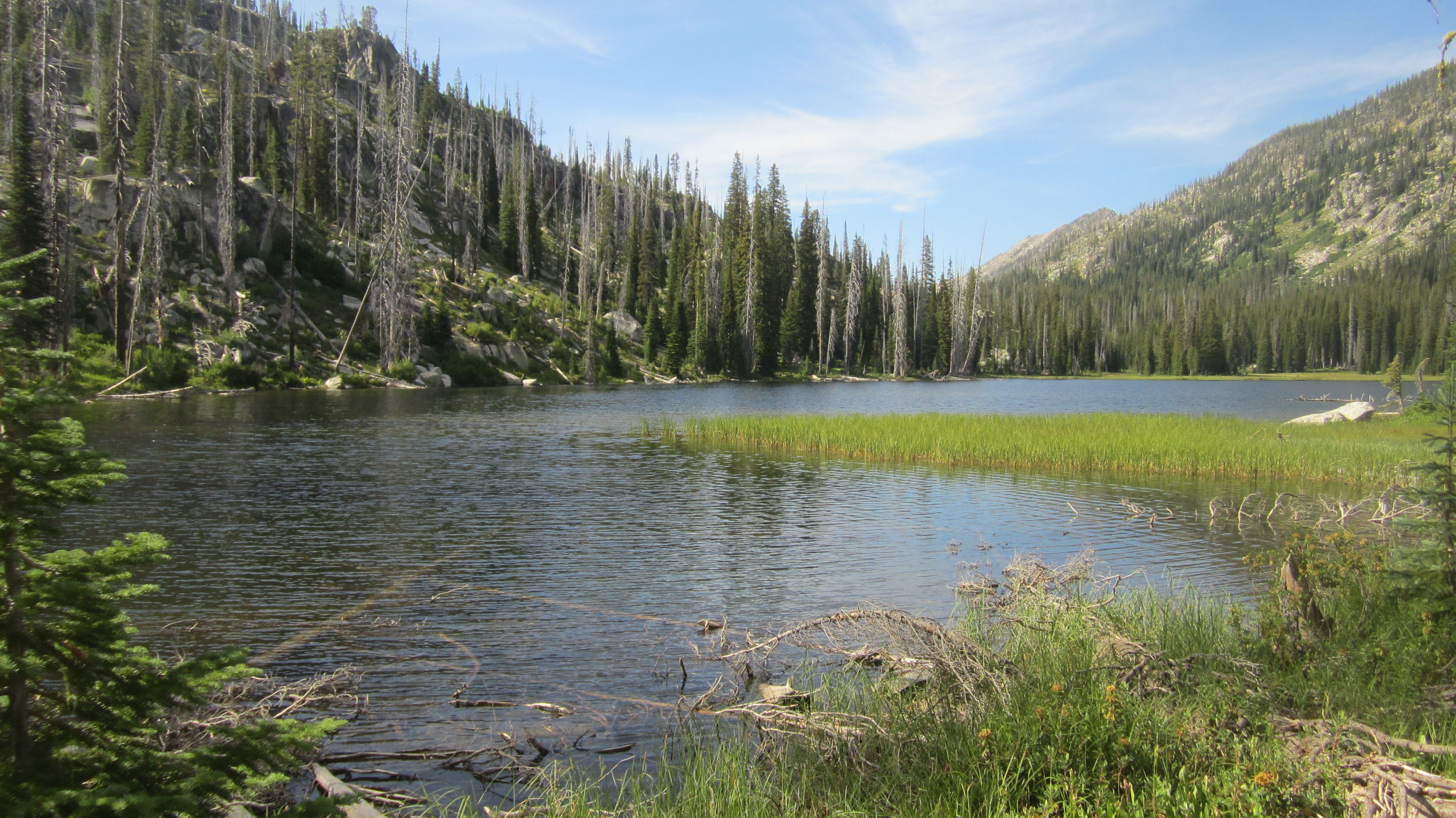 Duck Lake hike: Now here was an easy, shady ascent that is suitable for children or for the adventurer looking for a stroll. I enjoyed this trail a lot more than Hum Lake thanks to the trees, the clear trail, and the lack of flies. The lake is pleasant and easy to reach. There are campsites around the lake, although if I had stayed, I would have needed some bug spray (I’m guessing) for the night because it is somewhat grassy as you can tell from the photo.