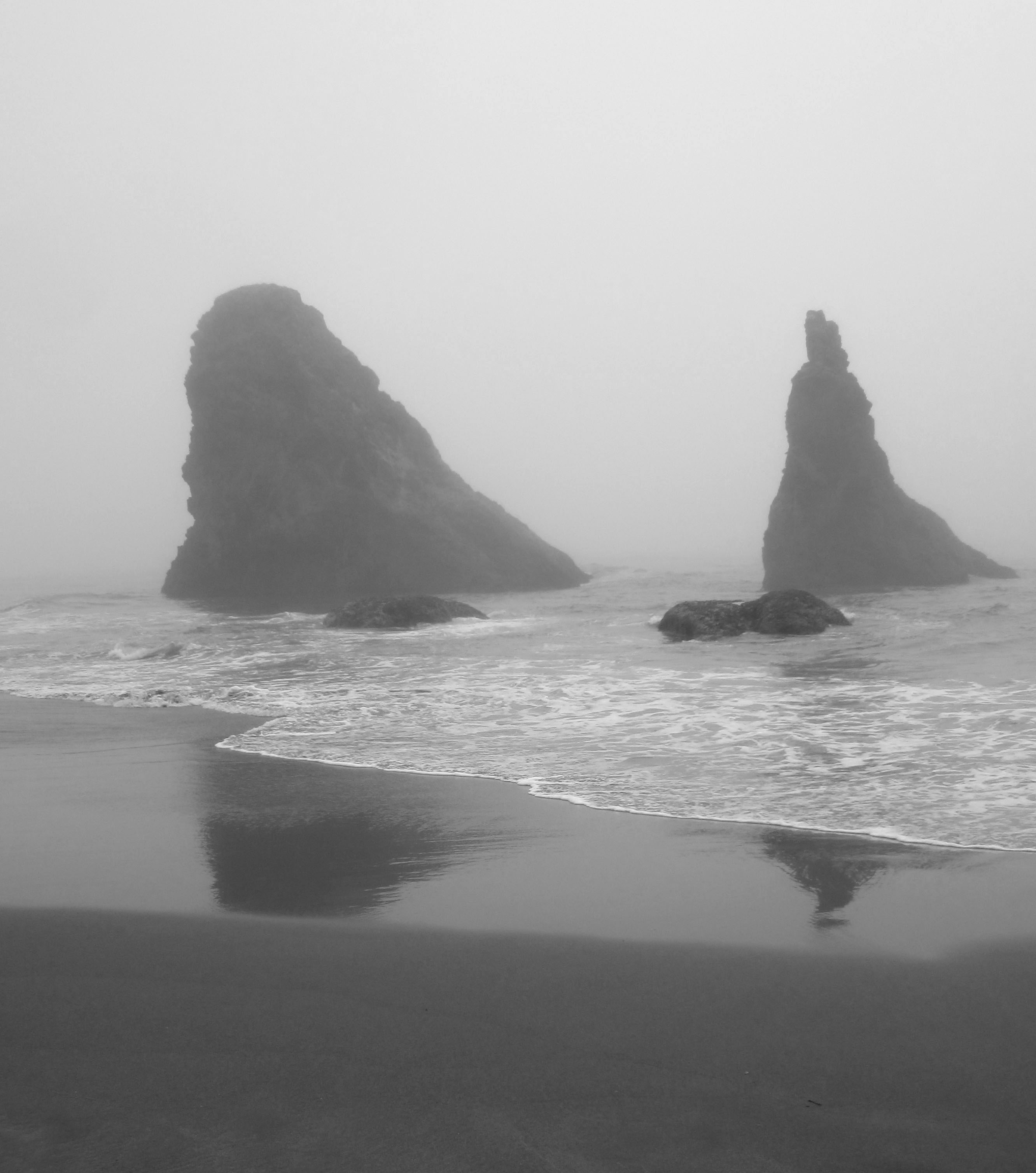 I wandered the Oregon Coast for a week to see beaches. I wanted sunny beaches— bright all-revealing shores that I could read and write by. The first day I was met by something entirely different: fog. I could barely see the ocean waves unless I stood right at the shore, but I could watch wave after wave of fog drift passed me and obscure my view.